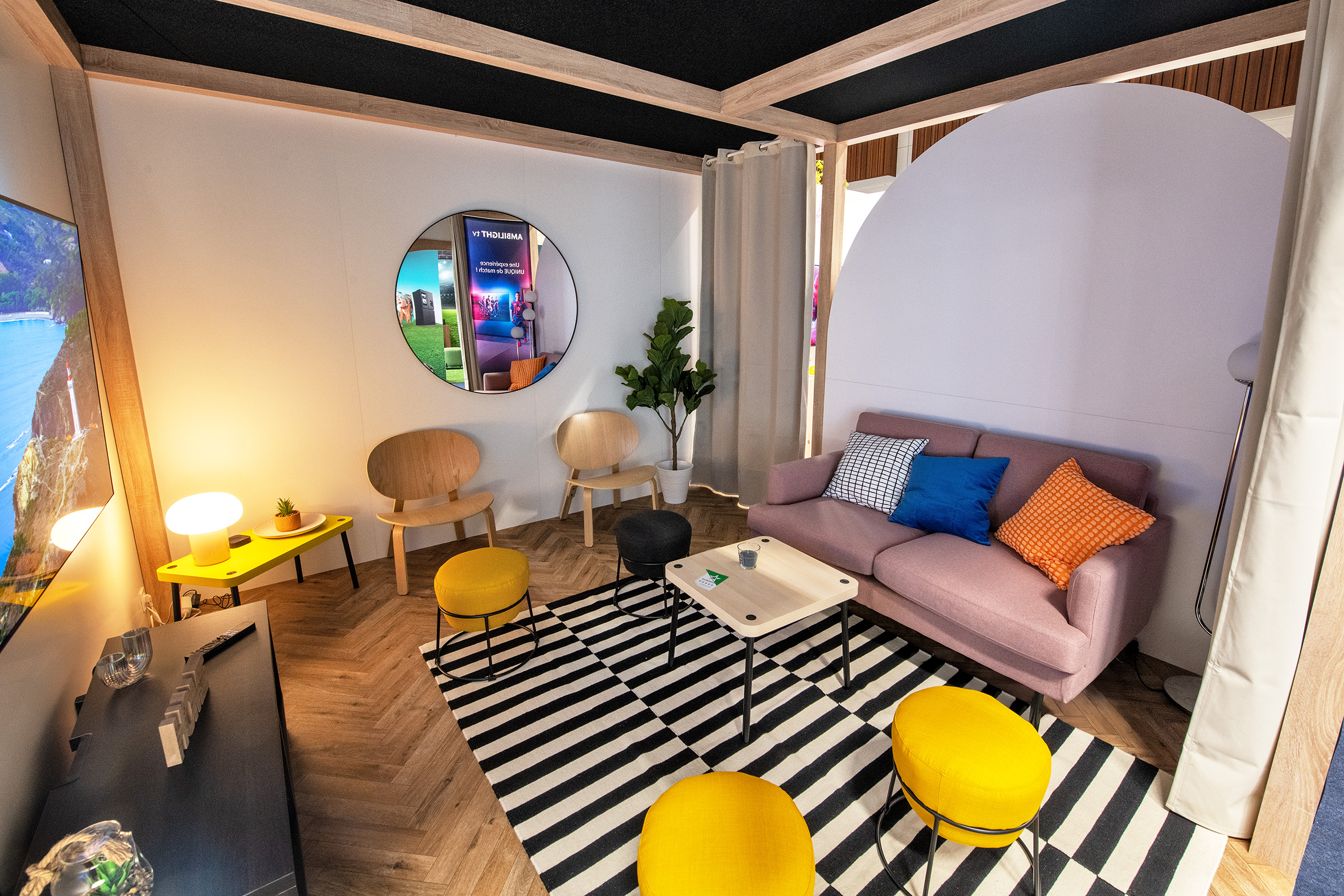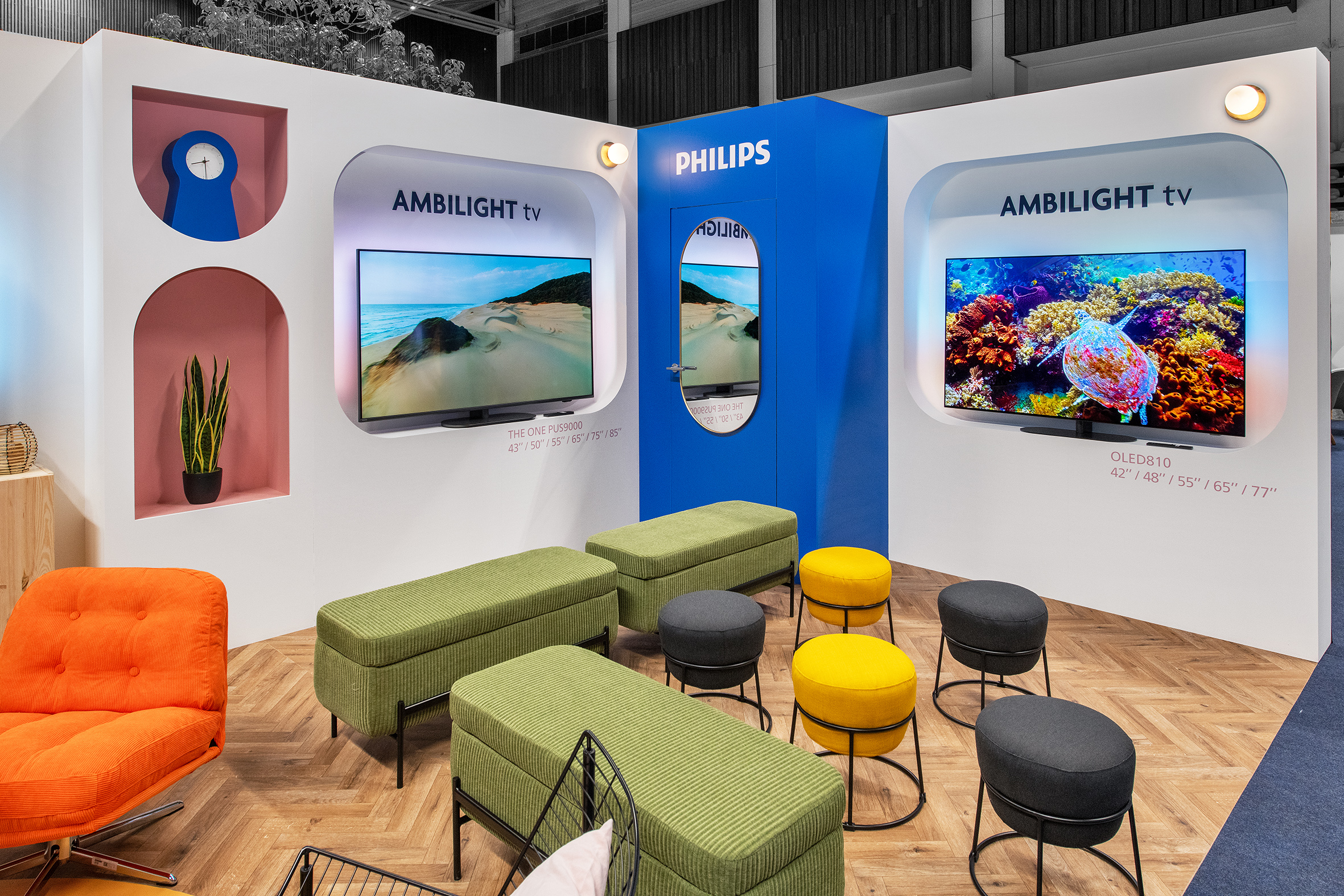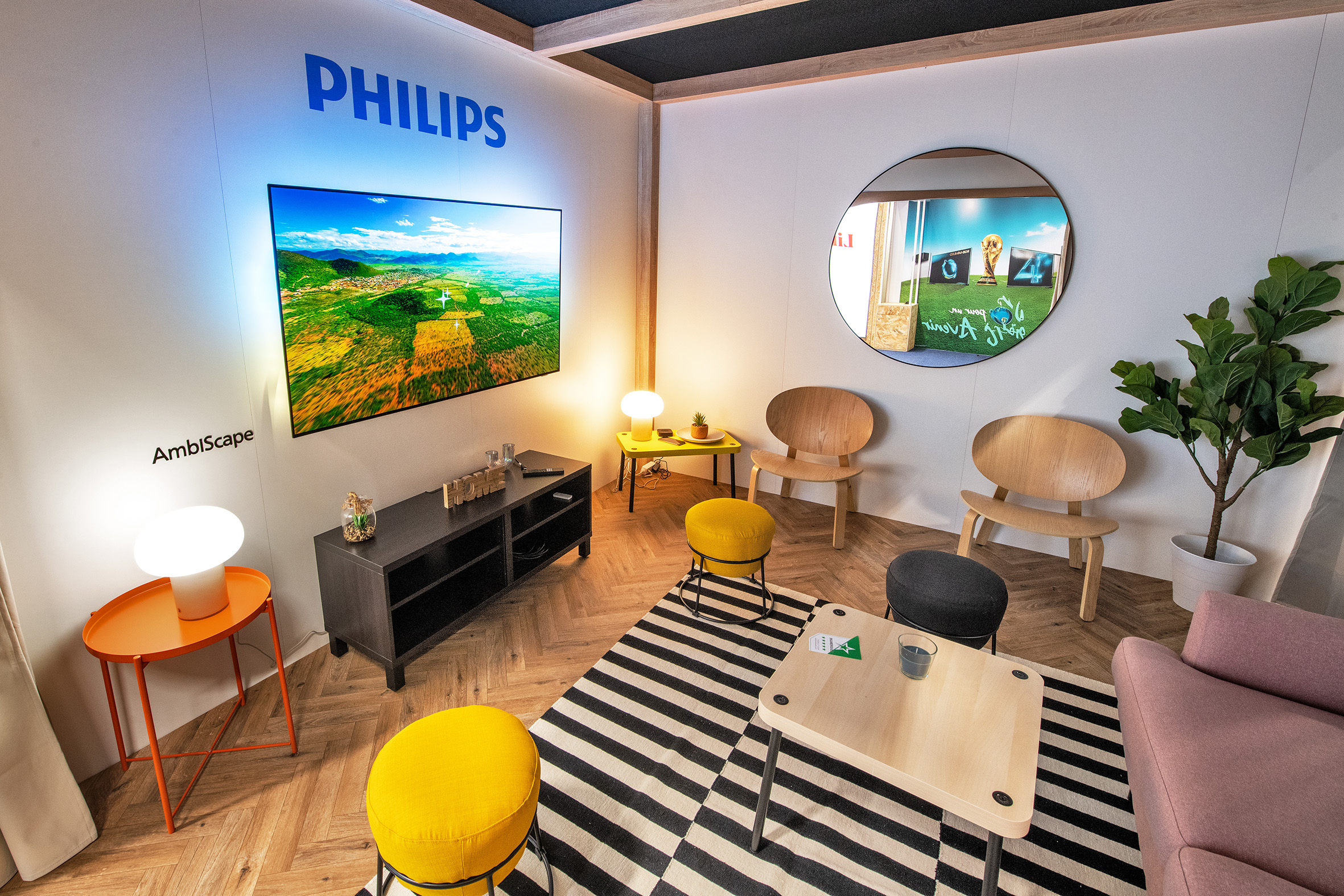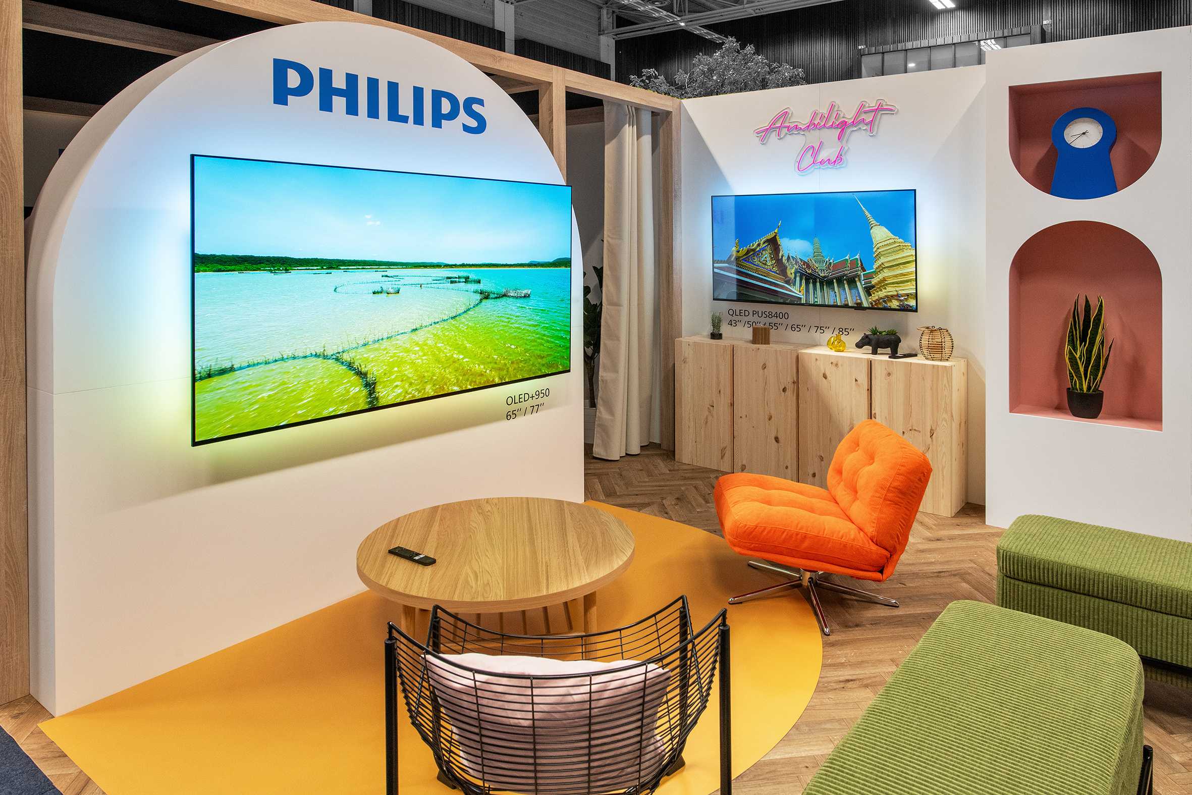 Ici, l’enjeu est clair : ne pas juste exposer des télévisions, mais faire ressentir l’expérience Ambilight.